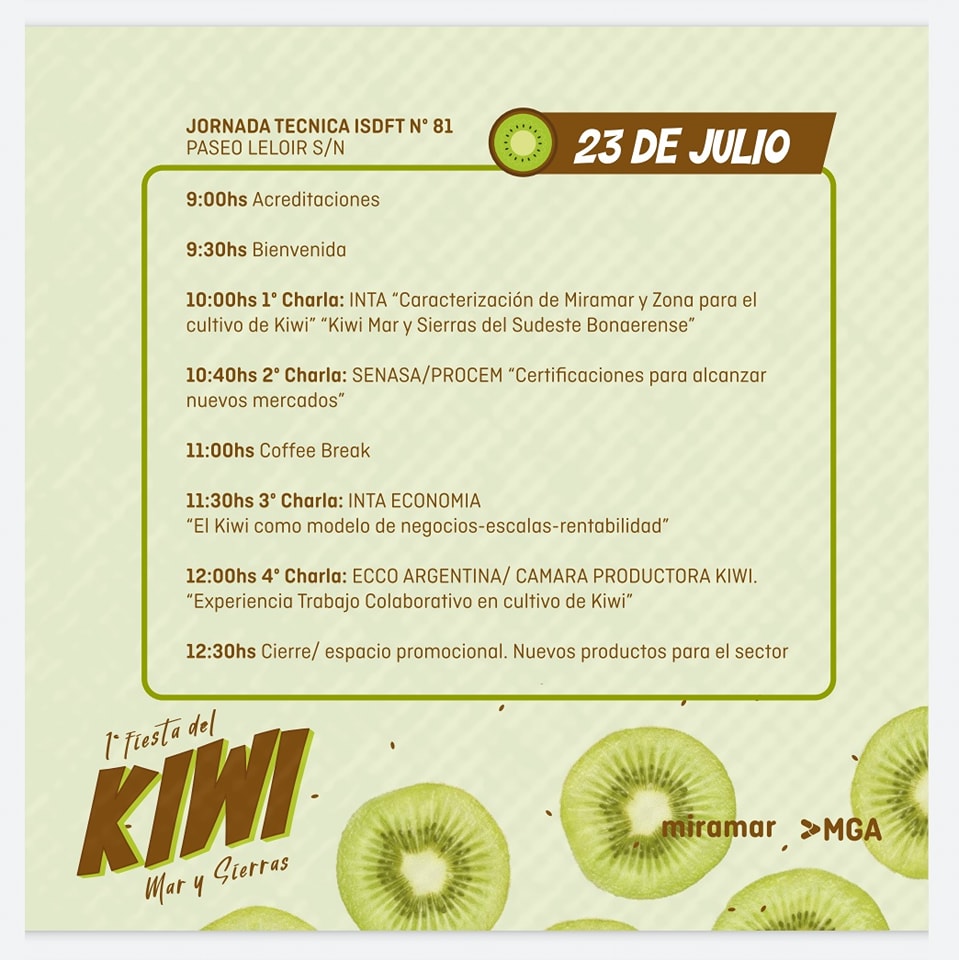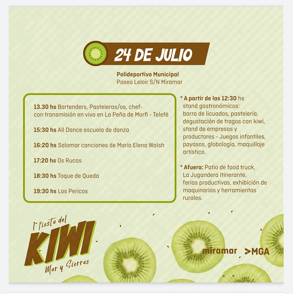 Turismo 1° Fiesta del Kiwi «Mar y Sierras» 18 julio, 202218 julio, 2022 22, 23 y 24 de julio 📆 Polideportivo Municipal de Miramar Notas relacionadas:2da Fiesta del Kiwi Mar y Sierras 20232da. edición de la Fiesta Nacional del Kiwi Mar y SierraMiramar y la Fiesta del Kiwi Mar y Sierras en "La…Se viene una nueva edición de la Fiesta del Kiwi en MiramarSe viene la 2° Edición de la Fiesta del Kiwi "Mar y Sierras"“Fiesta del Kiwi Mar y Sierras 2024”