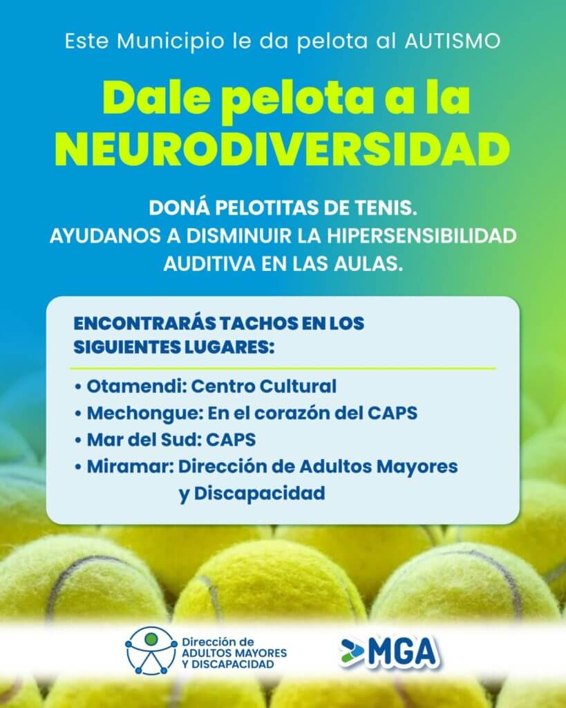 El Municipio de General Alvarado impulsa una acción solidaria para acompañar a personas con autismo: doná pelotitas de tenis y ayudanos a disminuir la hipersensibilidad auditiva en las aulas. Un gesto simple que hace una gran diferencia ![]()