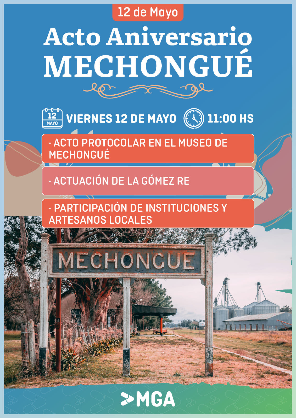 El Intendente Municipal del Partido de General Alvarado, Sebastián Ianantuony, participará del Acto en conmemoración del 112º Aniversario de la Fundación de Mechongué, que se llevará a cabo el viernes 12 de Mayo a las 11:00 hs. en Av. Circunvalación y calle 8.