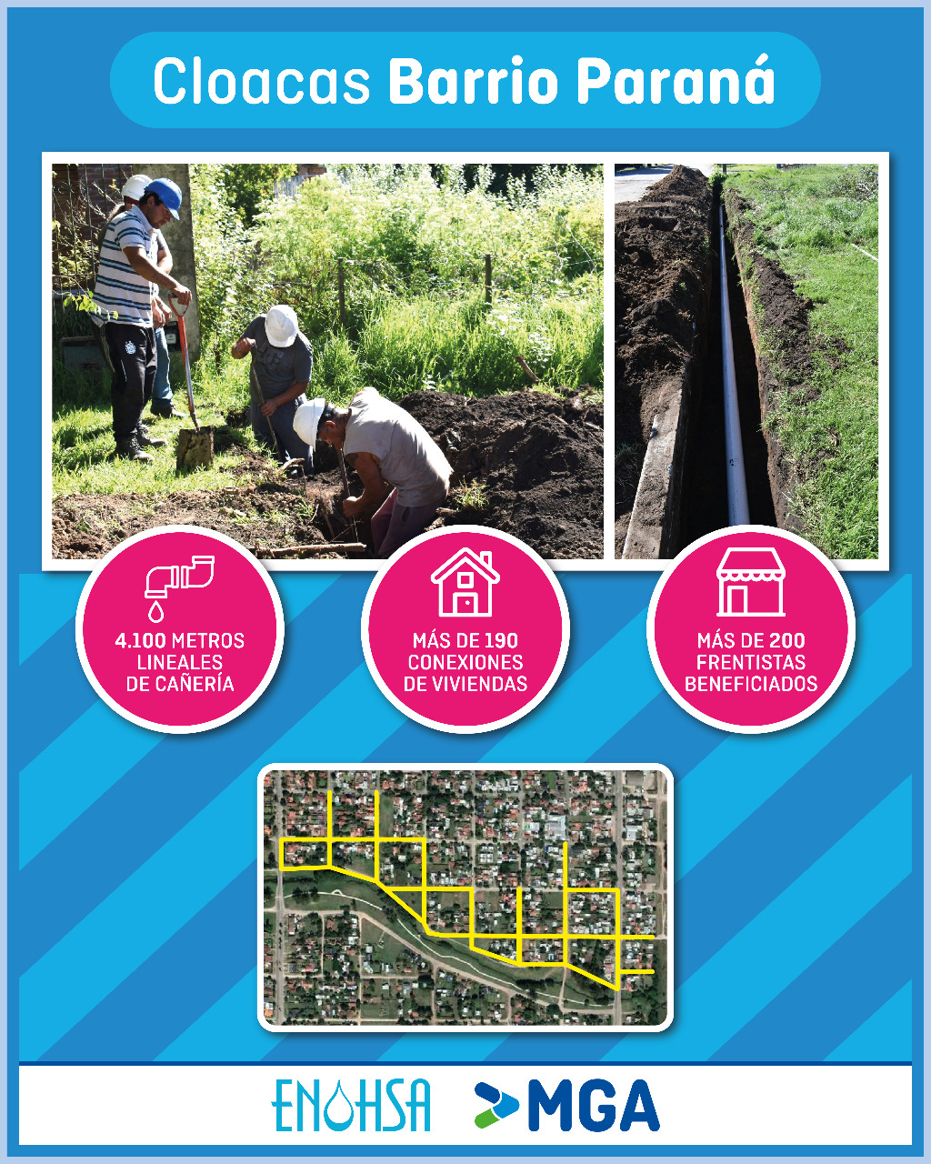 La obra completa integra 4.100 metros lineales de cañería, con más de 190 conexiones domiciliarias, y más de 200 frentistas beneficiados.