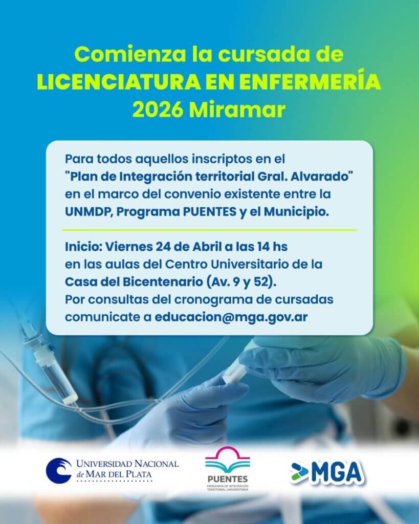 ✅Damos inicio a la cursada de la Licenciatura en Enfermería 2026 en Miramar, bajo el «Plan de Integración Territorial Gral. Alvarado» (UNMDP – Programa PUENTES – Municipio).
