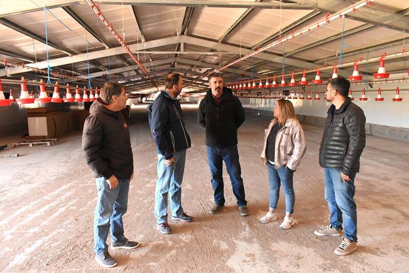 El Intendente Municipal de General Alvarado, Sebastián Ianantuony, junto al Delegado Municipal de Mechongué, César Candia, y el Secretario de Producción, Desarrollo Local y Empleo, Federico Meaca, visitaron los galpones de la empresa “Camino Rural S.A.” en la localidad de Mechongué, que integran la futura planta de cría de pollos para su posterior faena y elaboración.