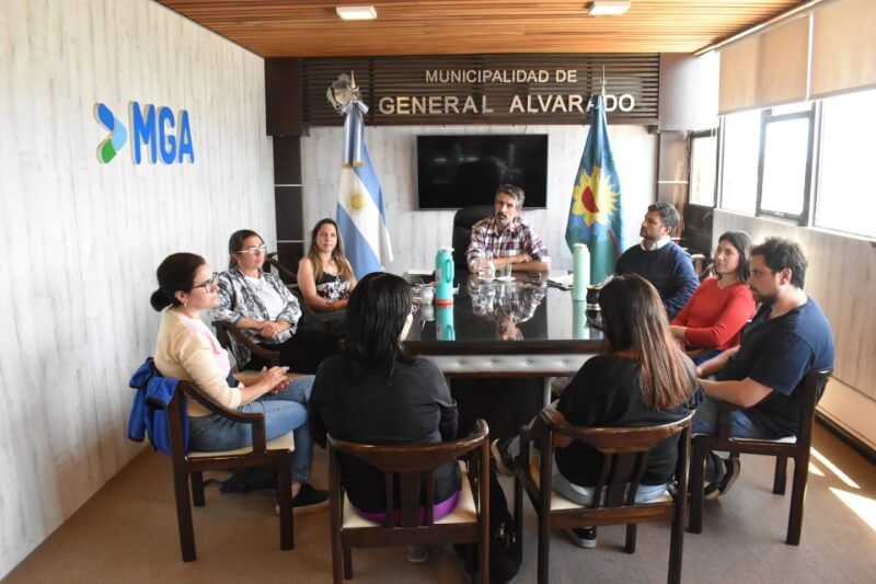 El Intendente Municipal, Sebastián Ianantuony, acompañado por la Secretaria General y de Gobierno, Belén Battenti, al Secretario de Producción , Empleo , Medio, Ambiente y OMIC, Federico Meaca, a la Secretaria de Desarrollo Humano, María Laura Banús y demás funcionarios, recibió en la sala de Audiencias del Palacio Comunal a la Lic. Érica Ávila Echeveste, directora de la Agencia Territorial INTA Otamendi, y parte de su equipo.