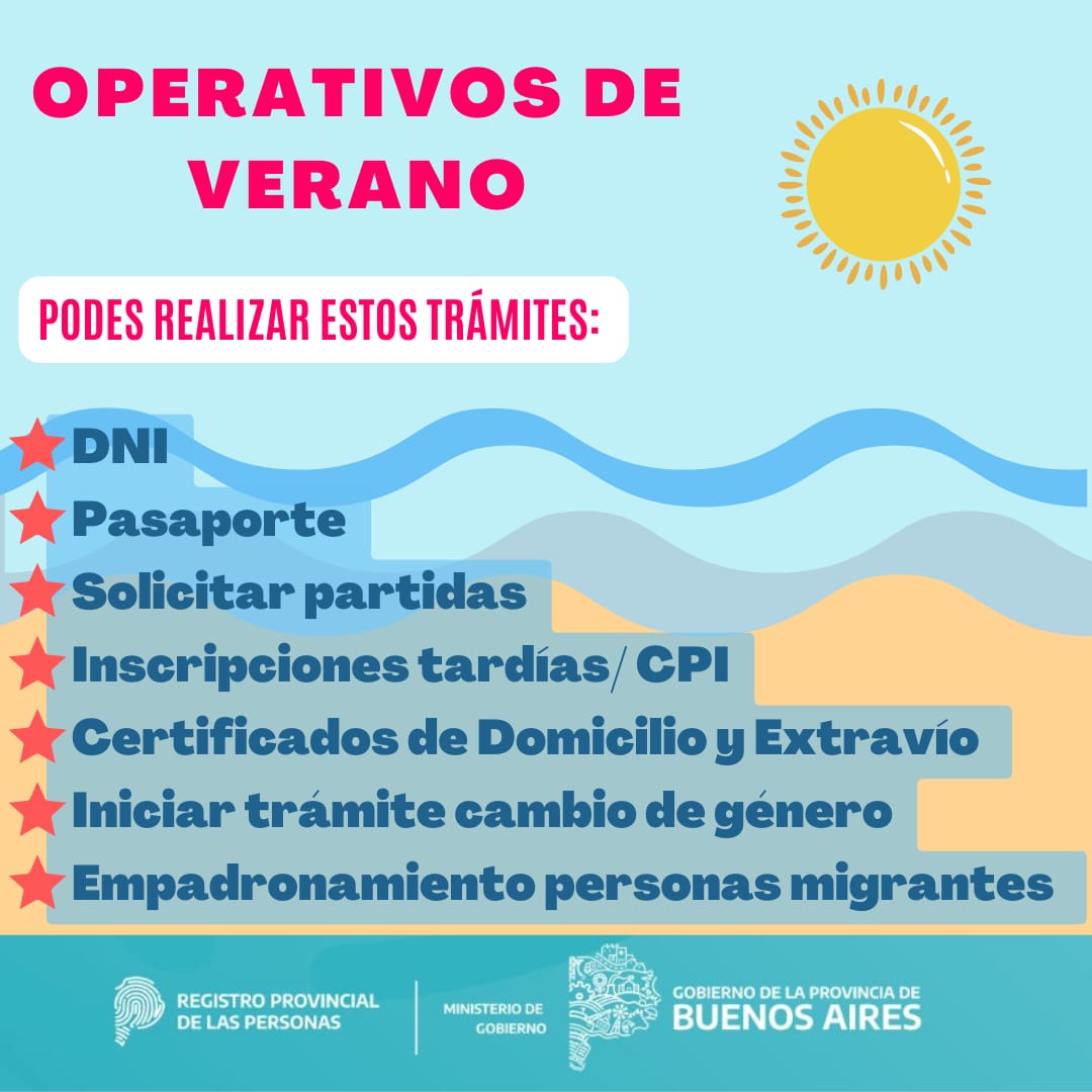 El Registro Provincial de las Personas estará también con su Móvil en Miramar y Mar del Sud, de acuerdo al siguiente esquema: