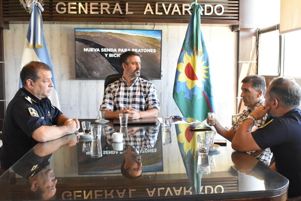 El Intendente Municipal de General Alvarado, Sebastián Ianantuony, acompañado por el Secretario de Seguridad, Paulo Rodríguez, y el titular de la Policía Comunal, Crio. Diego Gancedo, se reunió con el Superintendente de Seguridad de la Región Atlántica, Crio. Mayor José Miguel Ojeda.