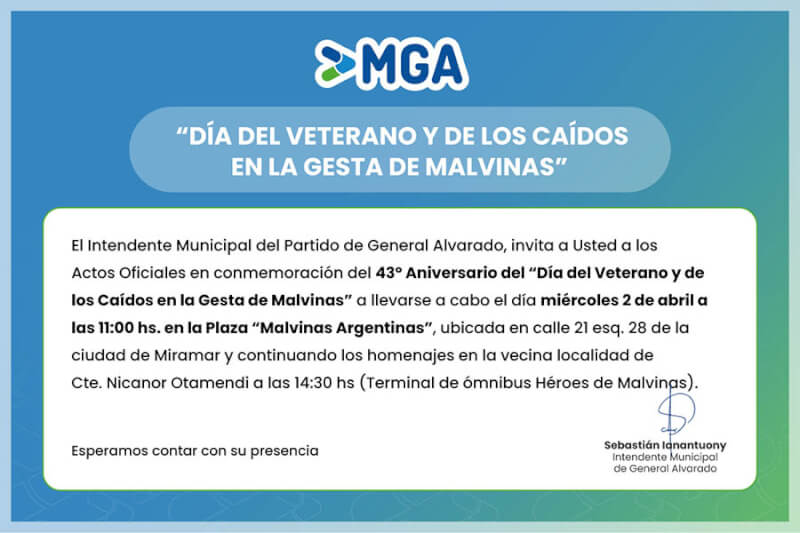 Actos Oficiales en Miramar y Otamendi por el 43º Aniversario de la Gesta de Malvinas