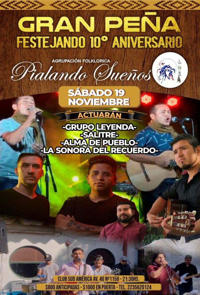 Cultura Peña Aniversario de Pialando Sueños 17 noviembre, 202218 noviembre, 2022 Notas relacionadas:Mechongué: Homenaje a Miguel Ángel “Tito” RamosMensaje de la Sociedad de Escritores de General Alvarado100° Aniversario del Bosque Vivero Dunícola…134° Aniversario de la Fundación de MiramarGacetilla de Prensa Municipal 23/12/24Concierto 31° Aniversario Coro Popular de Cte. N. Otamendi